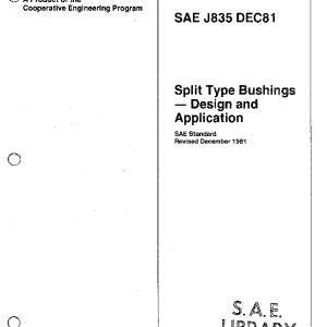 This SAE Standard presents the standard sizes, important dimensions, specialized measurement techniques and tolerances for split type bushings. Both SI and inch sizes are shown; their dimensions are not exact equivalents. New designs shall use SI units.