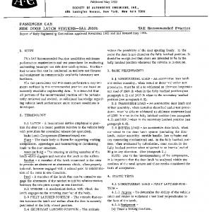 This SAE Recommended Practice establishes minimum performance requirements and test procedures for evaluating and testing passenger car side door latch systems. It is limited to tests that can be conducted on uniform test fixtures and equipment in commercially available laboratory test facilities.