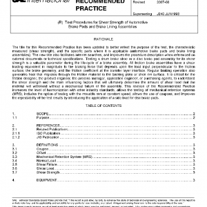 Test Procedures for Shear Strength of Automotive Brake Pads and Brake Lining Assemblies
