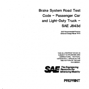 This SAE Recommended Practice establishes a uniform procedure for the level road test of the brake systems of new light-duty trucks and new multipurpose passenger vehicles1 up to and including 6000 lb (2700 kg) gvw and all classes of new passenger cars.
