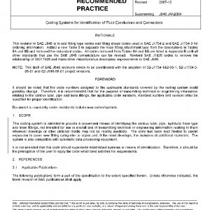 This coding system is intended to provide a convenient means of identifying the various tube, pipe, hydraulic hose type and hose fittings, not intended for use in aircraft and of transmitting technical or engineering information relating to them wherever drawings or other pictorial media may not be readily available. The code has been kept flexible to permit expansion to cover new fitting categories or styles and, if the need develops, the inclusion of additional materials. The system is also compatible with automatic data processing equipment.