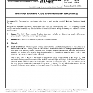 This SAE Recommended Practice describes methods for determining plastic deformation encountered in the forming or drawing of sheet steel.