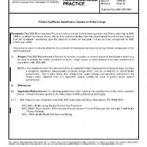 This SAE Recommended Practice is intended to provide a uniform means of identification which may be used to classify the friction coefficient of brake linings, based on data obtained from tests conducted in accordance with SAE J661.