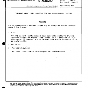 This SAE Standard provides names of major components peculiar to tractors used with scrapers and dumpers. (See Figures 1 to 3.) Reference SAE J1057. Illustrations of components are not intended to be exactly descriptive of any particular machine.