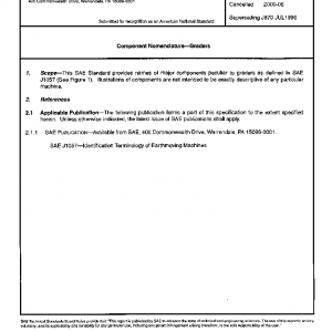 This SAE Standard provides names of major components peculiar to graders as defined in SAE J1057 (See Figure 1). Illustrations are not intended to be exactly descriptive of any particular machine.