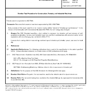 This SAE Standard specifies a test method to measure the drawbar pull performance of self-propelled construction, forestry, and industrial machines and their combinations with mounted and/or trailed equipment, with or without payload, as listed in SAE J1116.