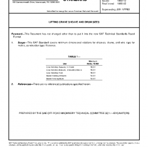 This SAE Standard covers minimum dimensional relations for sheaves, drums, and wire rope for mobile, construction type lift cranes.