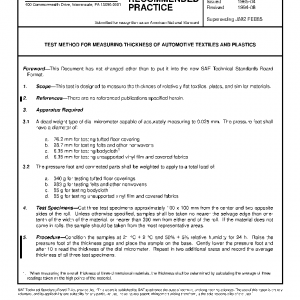 TEST METHOD FOR MEASURING THICKNESS OF AUTOMOTIVE TEXTILES AND PLASTICS