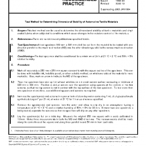 Test Method for Determining Dimensional Stability of Automotive Textile Materials