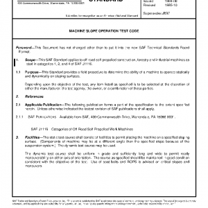 This SAE Standard applies to off-road self-propelled construction, forestry and industrial machines as listed in categories 1, 2, and 4 of SAE J1116.