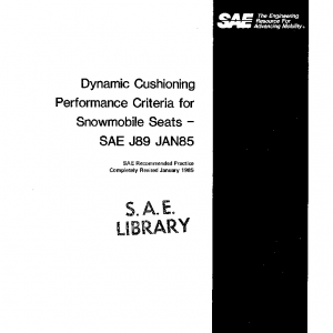 This recommended practice encompasses the significant factors which determine the effectiveness of a seat system in limiting spinal injury during vertical impacts between the rider and the snowmobile seat system. The recommended practice is intended to provide a tool for the development of safer snowmobile seats. It is recognized that the seat is only a portion of the entire vehicle protective suspension system. It is, however, usually required that the seat serve as added protection to the suspension system, since the latter may “bottom out” during a severe impact.