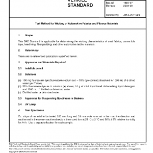 This SAE Standard is applicable for determining the wicking characteristics of seat fabrics, convertible tops, headlining, fiber padding, and other automotive textile materials.