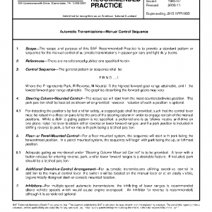 The scope and purpose of this SAE Recommended Practice is to provide a standard pattern or sequence for the manual control of automatic transmissions in passenger cars and light-duty trucks.