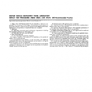 This SAE Recommended Practice describes a laboratory test procedure for evaluating the head impact characteristics of such areas of an automotive instrument panel as may be required to meet impact performance established for the protection of lap-belted front seat occupants.
