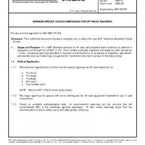 This SAE Standard pertains to off-road, self-propelled work machines as defined in categories one through five of SAE J1116. It is intended to provide engineers and designers with information in order that access openings provided in equipment and machinery for purposes of inspection, adjustment, and maintenance are made large enough for the intended function by the person in the field or shop.