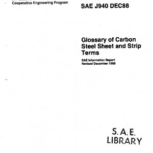 This glossary is intended to provide engineers, metallurgists, and production personnel with uniform definitions of commonly used carbon sheet and strip terms. The glossary serves to supplement information and photographs reported in SAE J810, J763, J877, J863, J403, and J1562.