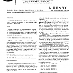 Flashers referred to in this SAE Recommended Practice are for nominal 6 v d-c or 12 v d-c circuits as specified by the manufacturer, and are required to operate from two signal lamps to the maximum design load, including pilot lamps, as stated by the manufacturer.