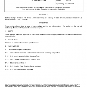 These methods of test are applicable for determining the resistance to snagging and abrasion of automotive bodycloth, vinyl and leather.