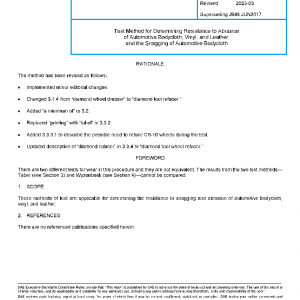 These methods of test are applicable for determining the resistance to snagging and abrasion of automotive bodycloth, vinyl, and leather.