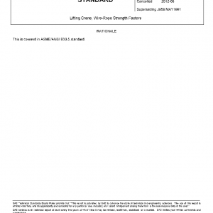 This SAE Standard applies to all mobile, construction-type, lifting cranes as equipped for operation with hook, clamshell, magnet, and grapple attachments. It is not applicable to excavating and demolition attachments such as shovels, hoes, draglines, and wrecking balls. The purpose of this document is to set forth wire-rope strength factors that have been proved by design and operating practice to be consistent with safety, economy, space, weight, and other requirements peculiar to mobile, construction-type, lifting cranes.