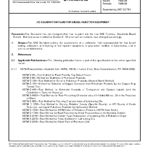 This SAE Standard defines the requirements of a calibration fluid recommended for flow bench testing, calibration, and flushing of fuel injection equipment, in production facilities, in laboratories, and in service establishments.