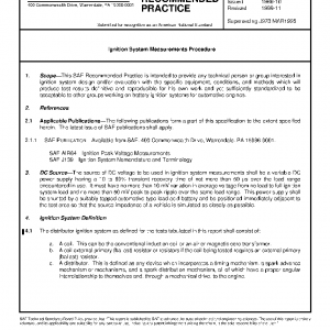 This SAE Recommended Practice is intended to provide any technical person or group interested in ignition system design and/or evaluation with the specific equipment, conditions, and methods which will produce test results definitive and reproducible for his own work and yet sufficiently standardized to be acceptable to other groups working on battery ignition systems for automotive engines.