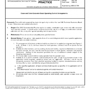 This SAE Recommended Practice applies to mobile, construction type, crane and cable excavator hand and foot controls. It should not be construed to limit the use of, or to apply to combination controls, automatic controls, or any other special operating control requirements.