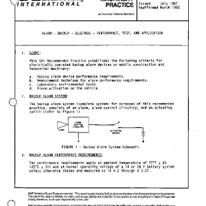 This SAE Recommended Practice establishes the following criteria for electrically operated backup alarm devices on mobile construction and industrial machinery: