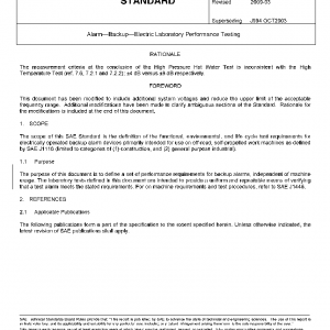 The scope of this SAE Standard is the definition of the functional, environmental, and life cycle test requirements for electrically operated backup alarm devices primarily intended for use on off-road, self-propelled work machines as defined by SAE J1116 (limited to categories of (1) construction, and (2) general purpose industrial).