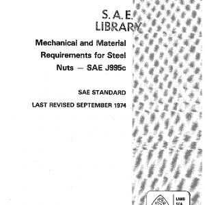 This SAE Standard covers the mechanical and material requirements for three grades of steel nuts suitable for use in automotive and related engineering applications, in sizes ¼ to 1½ in., inclusive, and with dimensions conforming with the requirements of the latest issue of SAE J104.