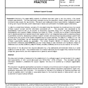 This SAE Recommended Practice provides a framework for the establishment of a software support concept related to the support and supportability of both custom-developed and Off-the-Shelf (OTS) software.