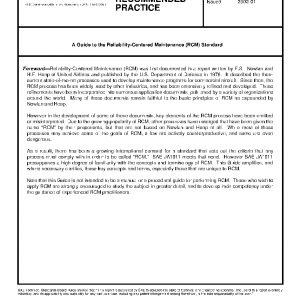 SAE JA1012 (“A Guide to the Reliability-Centered Maintenance (RCM) Standard”) amplifies and clarifies each of the key criteria listed in SAE JA1011 (“Evaluation Criteria for RCM Processes”), and summarizes additional issues that must be addressed in order to apply RCM successfully.