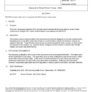 This SAE Aerospace Standard (MA) provides recommended dimensional data for screw thread undercuts for straight “MJ” metric screw threads in accordance with MA1370.