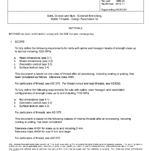 Bolts, Screws and Nuts – External Wrenching, Metric Threads – Design Parameters for