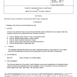 Areas for the standard metric series of thread diameter-pitch combinations for aerospace externally threaded fasteners are established for the following conditions: