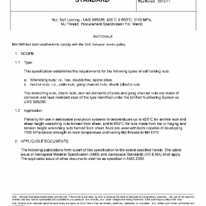 Nut, Self Locking – UNS S66286, 425°C & 650°C, 1100 MPa, MJ Thread, Procurement Specification For, Metric