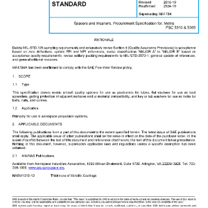 Spacers and Washers, Procurement Specification for, Metric