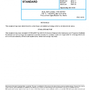 Nuts, Self-Locking, UNS N07001 730 °C, 1100 MPa, and 1210 MPa Procurement Specification for, Metric(STABILIZED May 2024)