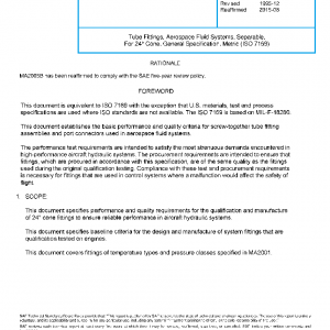 This document specifies performance and quality requirements for the qualification and manufacture of 24° cone fittings to ensure reliable performance in aircraft hydraulic systems.