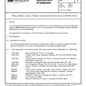 This aerospace specification defines the requirements for metric weld fittings and machine weldments using an orbiting welding head suitable for use on cold worked 3A1-2.5V titanium and 21Cr-6Ni-9Mn CRES tubing and associated fittings.