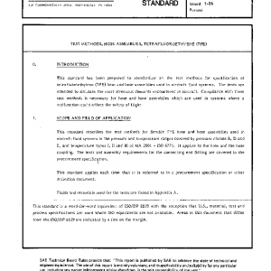 This standard describes the test methods for flexible TFE hose and hose assemblies used in aircraft fluid systems in the pressure and temperature ranges covered by pressure classes B, D and E, and temperature types I, II and III of MA 2001 – ISO 6771. It applies to the hose and the hose coupling. The tests and assembly requirements for the connecting end fitting are covered in the procurement specification.