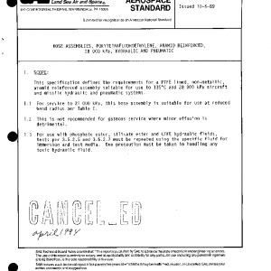 This specification defines the requirements for a PTFE lined, non-metallic, aramid reinforced assembly suitable for use to 135°C and 28 000 kPa aircraft and missile hydraulic and pneumatic systems.