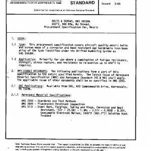 BOLTS & SCREWS, UNS S66286 650°C, 900 MPa, MJ Thread, Procurement Specification for, Metric