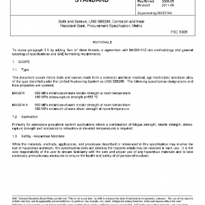 This document covers metric bolts and screws made from a corrosion and heat resistant, age hardenable iron base alloy of the type identified under the Unified Numbering System as UNS S66286. The following specification designations and their properties are covered: