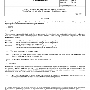 This document covers metric studs made from a corrosion and heat resistant, age hardenable iron base alloy of the type identified under the Unified Numbering System as UNS S66286. The following specification designations and their properties are covered: