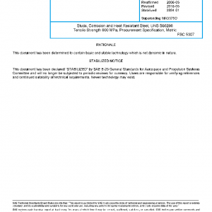 Studs, Corrosion and Heat Resistant Steel, UNS S66286, Tensile Strength 900 MPa, Procurement Specification, Metric(STABILIZED Jan 2024)