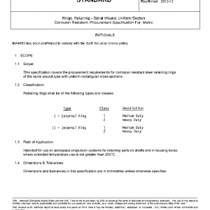 Rings, Retaining – Spiral Wound, Uniform Section Corrosion Resistant, Procurement Specification For, Metric