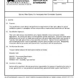 This specification covers design and performance requirements of fiber optic splices for optical distribution systems in aerospace vehicles and provides a means of procurement of such devices.