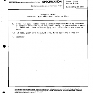 This specification covers established metric manufacturing tolerances applicable to copper and copper alloy sheet, strip, and plate ordered to metric (SI) dimensions. These tolerances apply to all conditions, unless otherwise noted.
