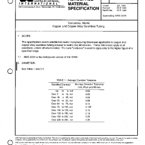 This specification covers established metric manufacturing tolerances applicable to copper and copper alloy seamless tubing ordered to metric (SI) dimensions. These tolerances apply to all conditions, unless otherwise noted. The term “exclusive” is used to apply only to the higher figure of a specified range.